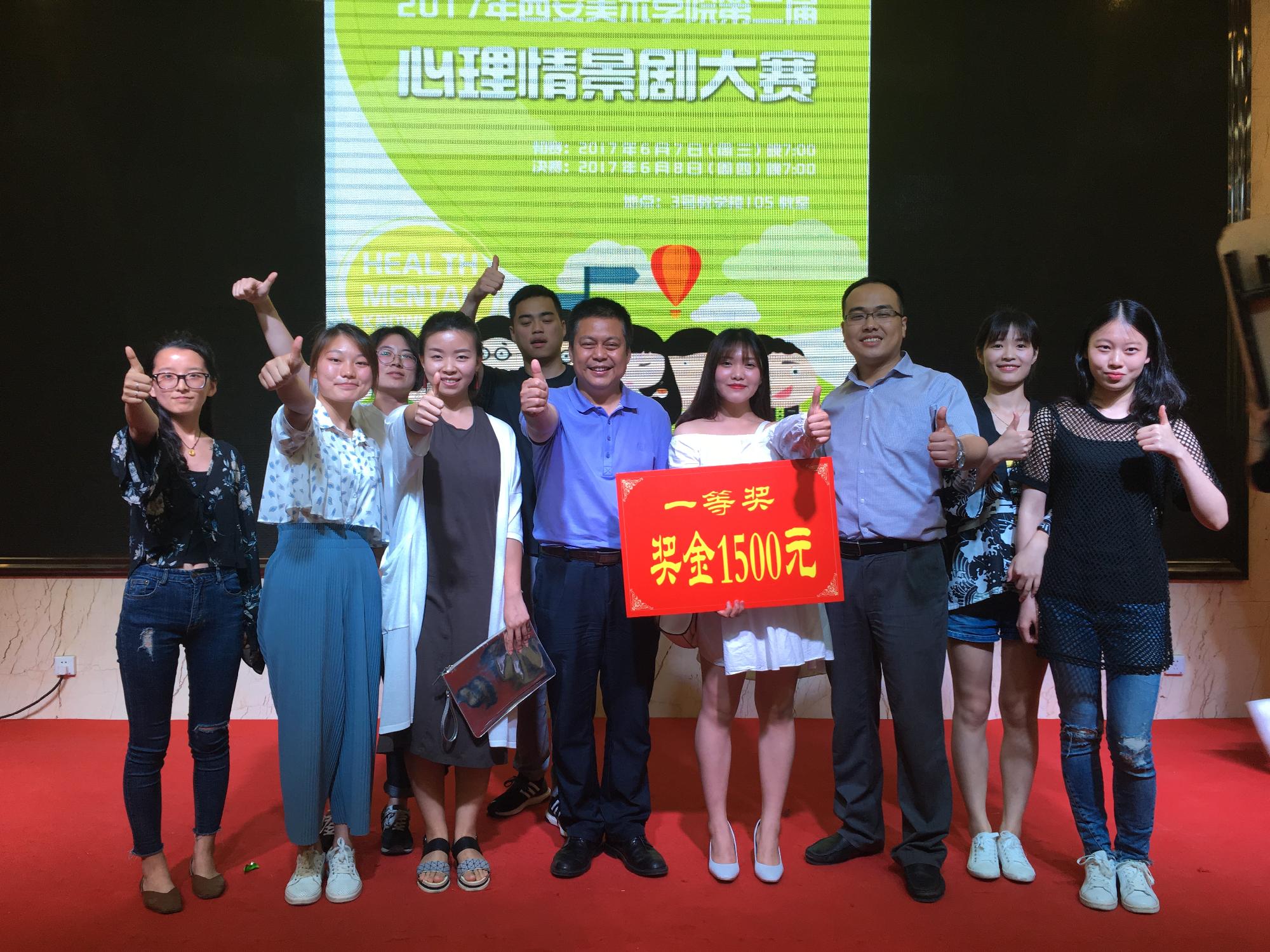 6月7日至6月8日,西安美术学院第二届心理情景剧大赛拉开序幕,经过两天时间的比赛,我系7名同学表演的心理剧《心的距离》获得高分,最终在决赛中取得第一名的优异成绩。同时,陈立丽同学获得最佳女主角奖.